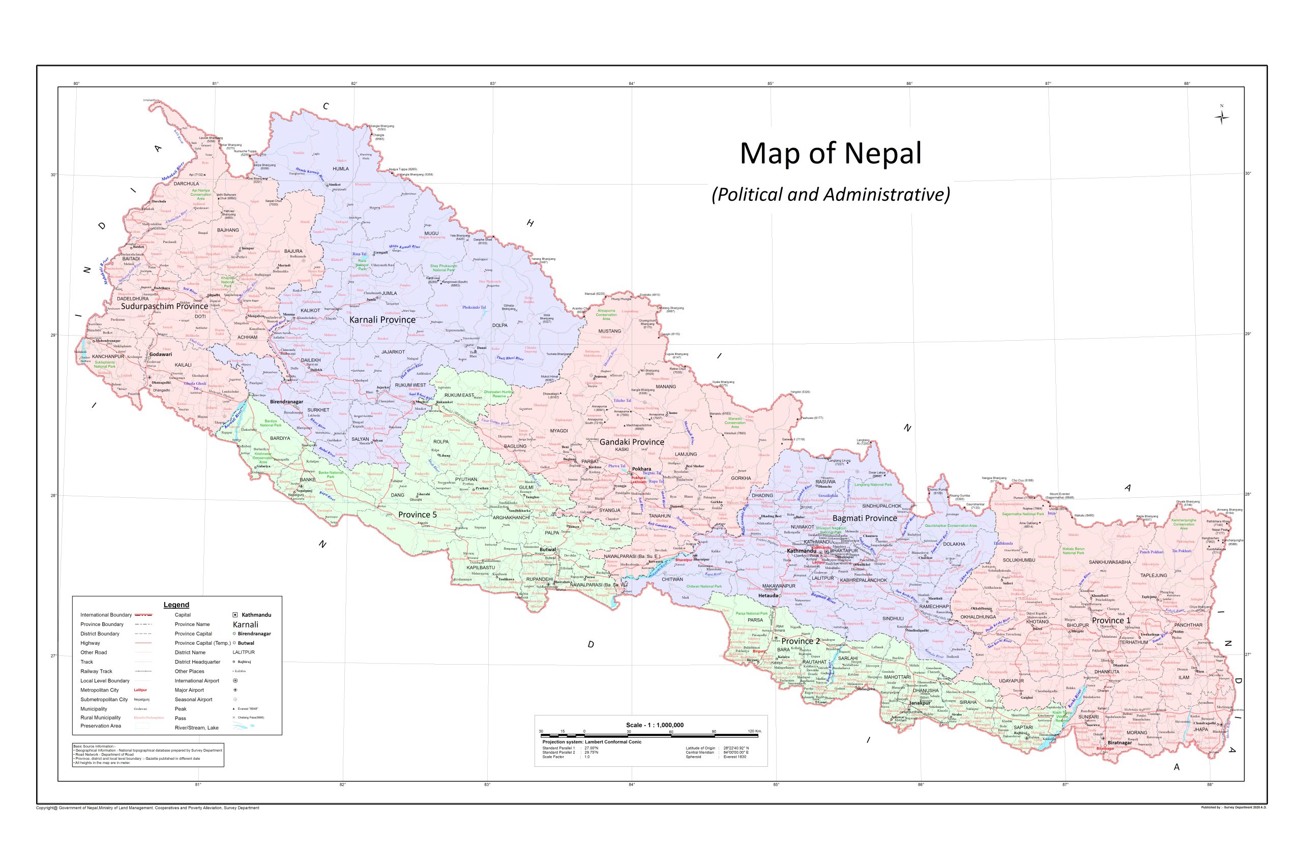 Political and Administrative Map of Nepal, published by Survey Department, 2020 A.D.